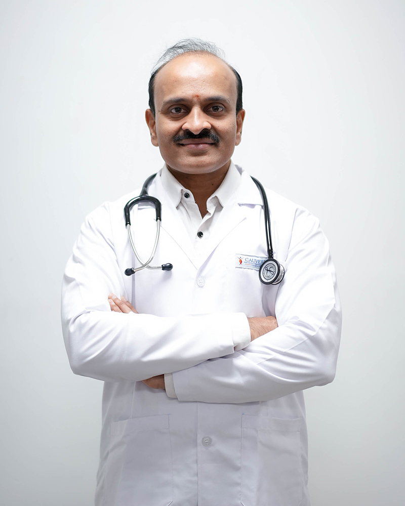 Dr. Chandrashekar G.R, MBBS, MS (General Surgery), is the Managing Director of Cauvery Heart and Multi-Speciality Hospital in Mysuru. With extensive experience in surgical care and hospital leadership, he is dedicated to delivering high-quality, patient-centered healthcare services.